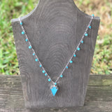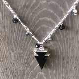 Beaded crystals adorn a silver chain ending in a stunning arrow-shaped stone.